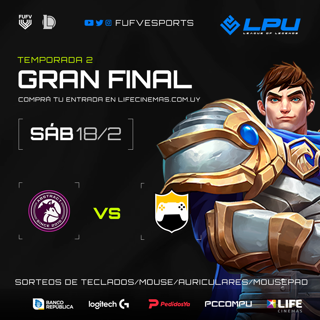 GRAN FINAL #LPU Season 2 presencial Bo5 @lifecinemasuy Tres cruces #LeagueOfLegends Sábado 18 de febrero 16:30 HS Abstract vs Peñarol Entradas en venta http://bit.ly/3Hq4H0X Con tu entrada participas de los sorteos con perifericos de Logitech