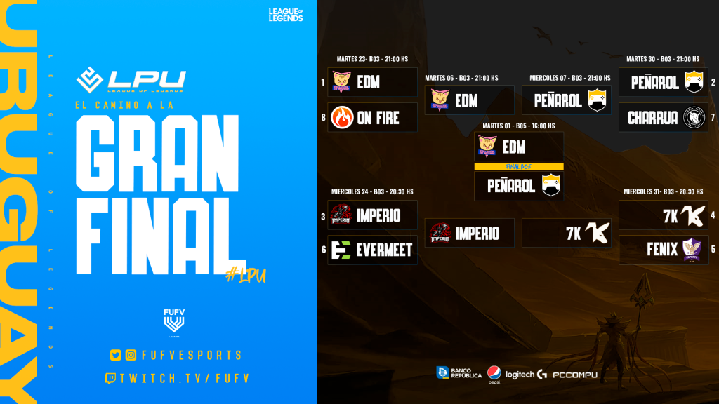 Este sábado desde las 16:00 hs EDM y Peñarol lvolverán a verse las caras en un Bo5 para saber quien es el campeón de la Season 1 de LPU .Peñarol llega como Campeón de la Open Qualy 1 que dio el punta pie inicial al desarrollo de la liga nacional LPU.